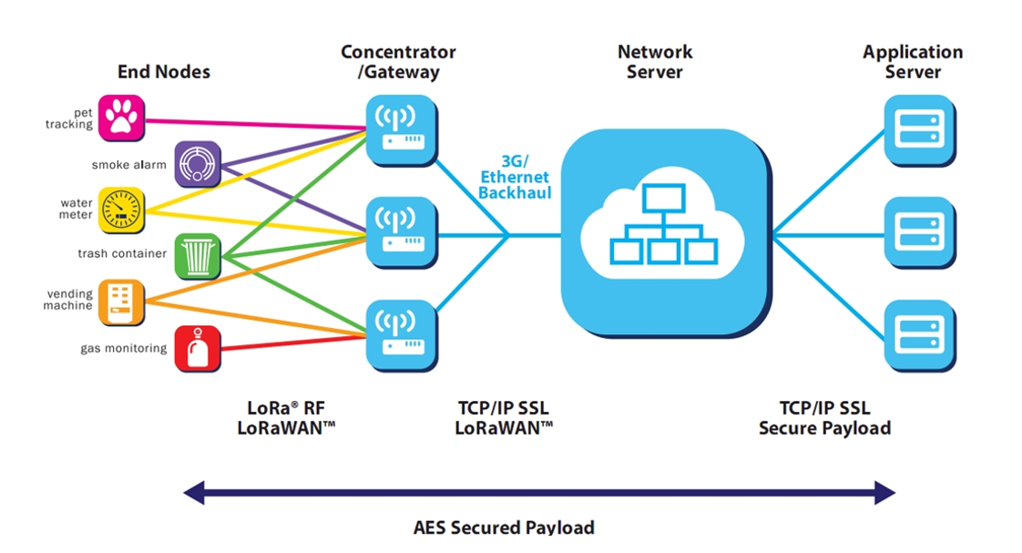 LoRa, noktadan noktaya iletişimi ve yıldız ağını destekler ve ağ geçidi cihazları aracılığıyla birden fazla düğümden verilerin merkezi olarak toplanmasını ve iletilmesini gerçekleştirir.
