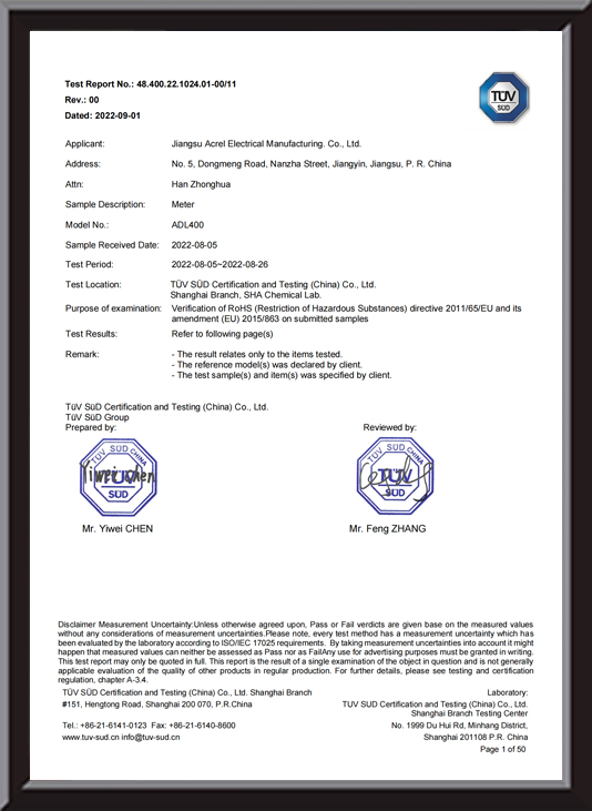 Şirketin üretim tesisi Jiangsu Acrel Electric Manufacturing Co., Ltd., gelişmiş test merkezleri ve kurşunsuz üretim süreçlerine olan bağlılığıyla katı kalite standartlarına ve çevre kurallarına uymaktadır. Acrel'in 500'ü aşkın mühendisten oluşan ekibi, en ileri enerji verimliliği sistemleri ve akıllı enerji çözümleri sunmaktadır.